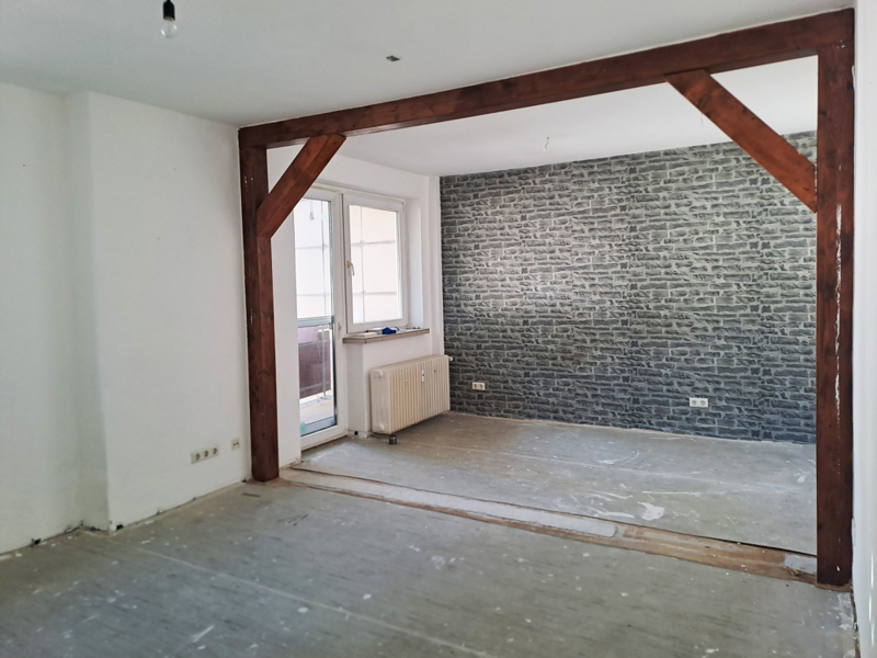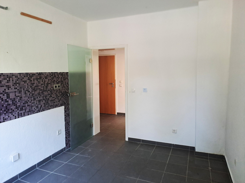 Der beigefügte Grundriss zeigt die Raumaufteilung vor dem Durchbruch der Wand zwischen Wohnzimmer und Kinderzimmer. Diese Wand wurde inzwischen entfernt, sodass es sich nun um eine 2,5-Zimmer-Wohnung handelt – und nicht wie im Grundriss angegeben um eine 3,5-Zimmer-Wohnung.