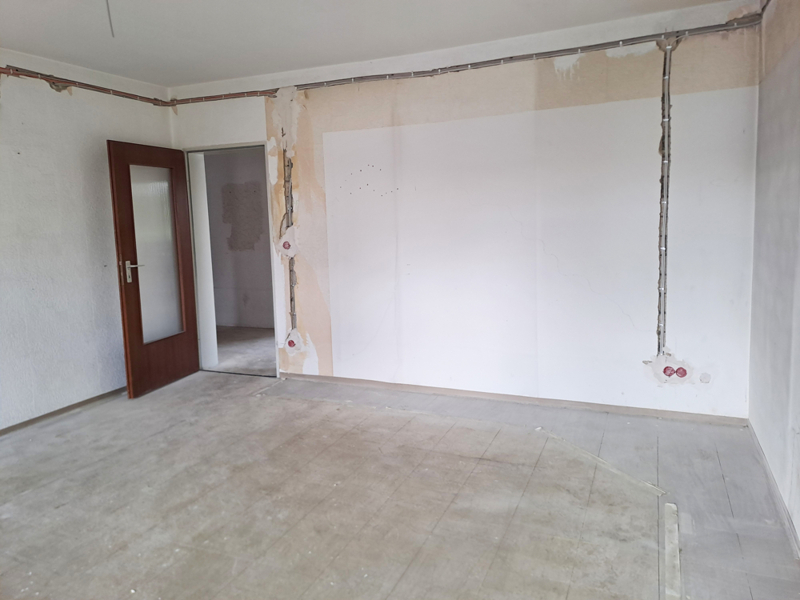 Aktuell ist die Wohnung ohne Bodenbeläge und Tapeten, was Ihnen die Möglichkeit bietet, Ihr neues Zuhause nach eigenen Vorstellungen zu gestalten. Der Vermieter zeigt sich hierbei entgegenkommend – individuelle Absprachen sind möglich. Auch die vorhandenen älteren Fliesen könnten auf Wunsch überarbeitet werden, um ein zeitgemäßes Bild zu schaffen.