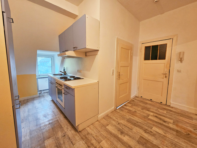 Von Innen überzeugt die Wohnung durch altbautypische hohe Wände und eine moderne Ausstattung. Ein Anstrich obliegt den Mietern.