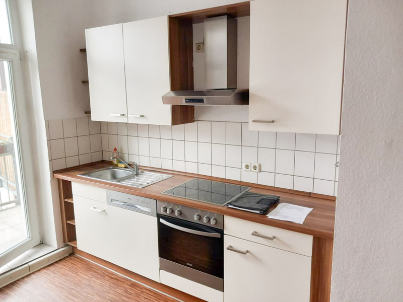Die bereitgestellte Einbauküche steht passgenau bereit und freut sich auf lange Kochabende mit Ihnen.