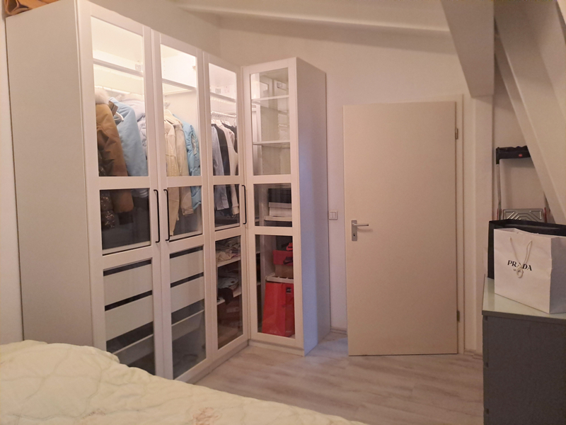Das Schlafzimmer bietet ein besonderes Highlight: Eine offene, spitzbodenartig gestaltete Nische mit Fenster. Diese außergewöhnliche Fläche eignet sich ideal als kleinen Homeofficeplatz oder begehbarer Kleiderschrank und verleiht dem Raum einen individuellen Charakter.